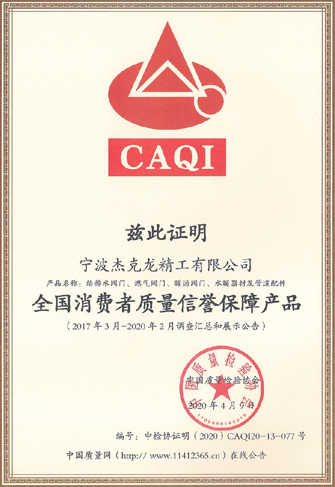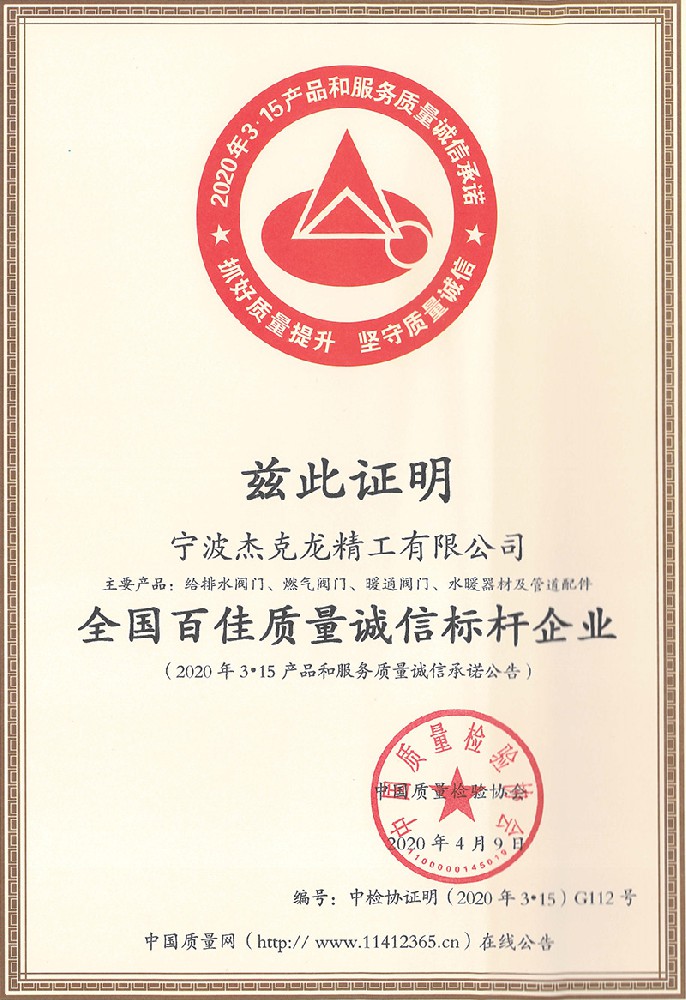 2018年11月8日,杰克龍精工公司正式獲得由浙江制造國際認證聯盟和杭州漢德質量認證服務有限公司聯合簽發(fā)的《浙江制造認證證書》。